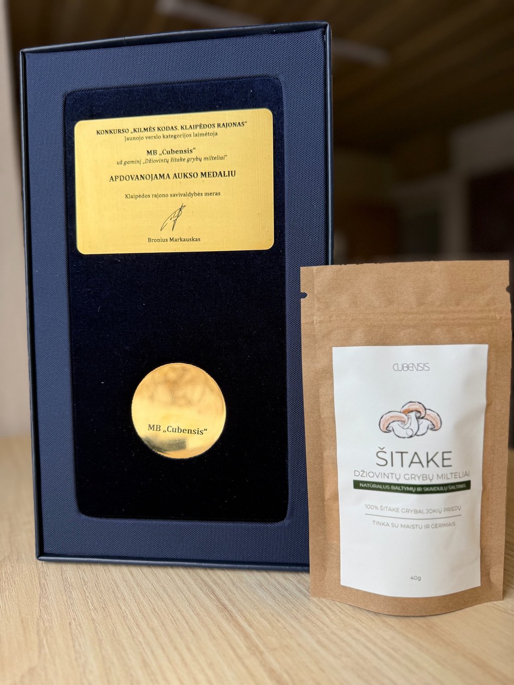 Šviežius ir džiovintus grybus – rankomis užauginti, kruopščiai atrinkti ir ruošiami liūto karčių grybai (Lion’s Mane), šitakiai (Shiitake) bei kreivabudės (Oyster).